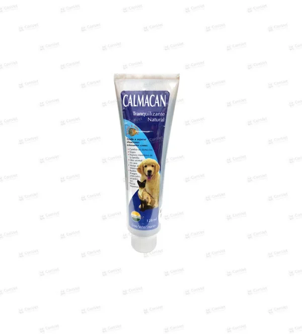 Calmacan es un suplemento nutricional anti estrés formulado con productos naturales, especialmente indicado para ayudar en la prevención o tratamientos de problemas de comportamiento relacionados con el estrés. Ayuda a las mascotas a superar los períodos de estrés o situaciones estresantes. Calmacan promueve una adaptación rápida a los cambios o situaciones tales como: Cambio de domicilio, vacaciones ( viaje junto a la familia o ingreso a residencias), nuevos miembros de la familia ( como un bebé o un nuevo animal), ruidos ( fuegos artificiales, petardos), visitas al veterinario o después de hospitalizaciones.No tiene efectos secundarios y puede ser usado por largos periodos de tiempo con total seguridad.