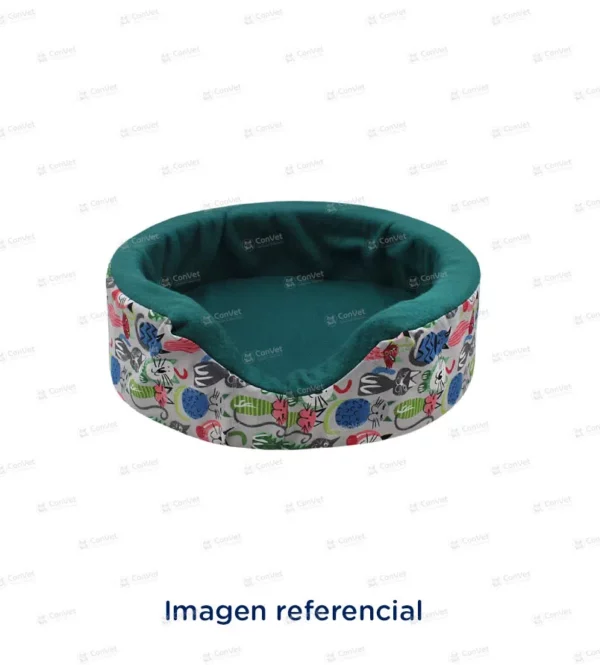 Cama de forma circular ideal para perros y gatos, de fácil adaptación con espuma y tela fresca. Estructura rígida estable.