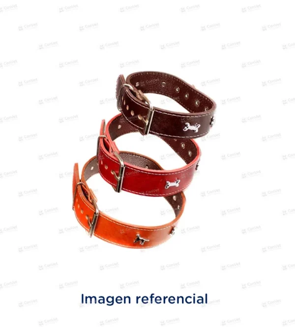 Collar de cuero con aplicaciones metálicas para perros.