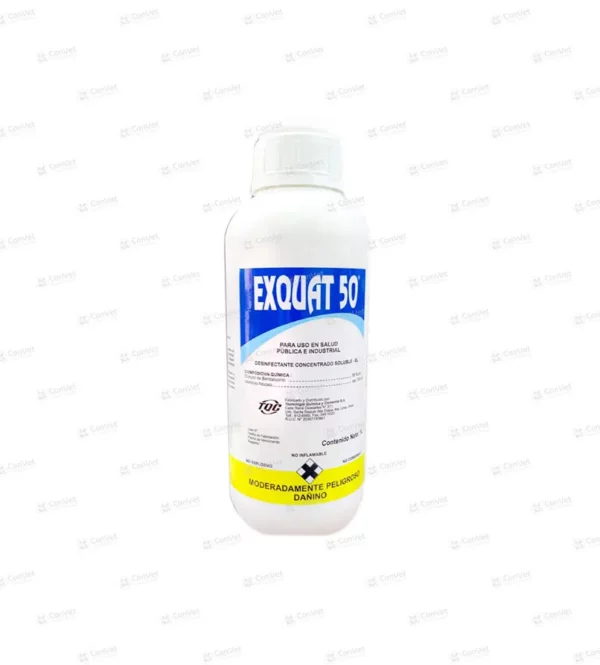 EXQUAT 50 es un potente desinfectante formulado a base de Cloruro de benzalconio,que elimina el virus SARS-CoV-2 (agente del COVID-19); bacterias y hongos, talescomo Staphylococcus aureus, Escherichia coli, Salmonella enterica, Streptococcuspyogenes, Pseudomona aeruginosa, Aspergillus niger y Candida albicans; con unaeficacia de más del 99,99%.