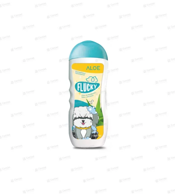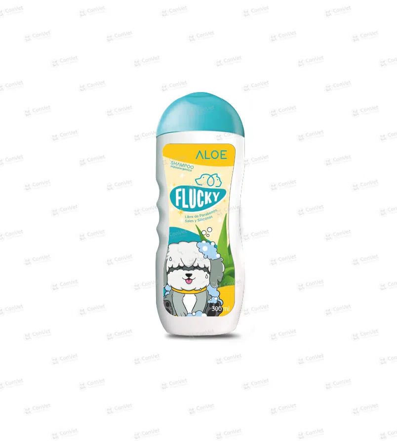 Uso tópico. Agite el producto antes de usar. Aplique Flucky Aloe Vera sobre el pelaje previamente mojado, dando masajes vigorosos en todo el cuerpo hasta formar abundante espuma. Espere un tiempo prudente antes de enjuagar con agua tibia. Finalmente seque con una toalla y cepille suavemente.