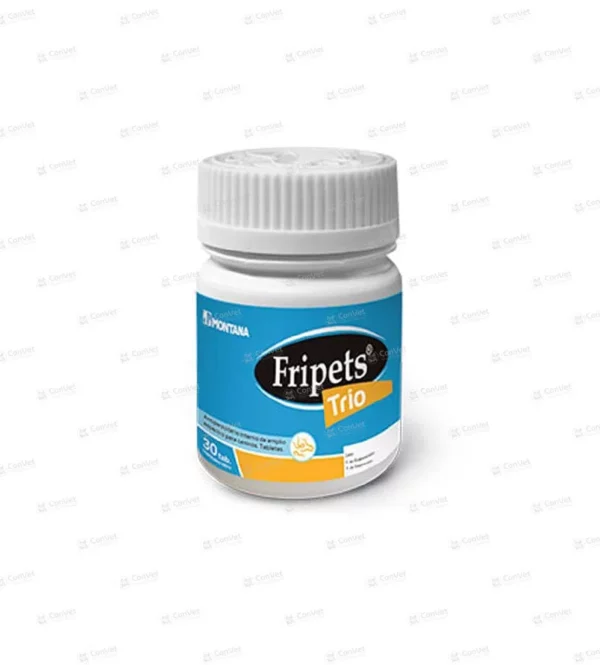 FRIPETS® TRIO está indicado para caninos y combina:– Praziquantel, anticestódico muy efectivo contra toda clase de tenias (Dipylidium caninum, Echinococcus granulosus, Taenia spp., Mesocestoides, etc.).– Ivermectina, que actúa contra microfilarias antes de los 3 meses de la infección (es la única molécula probada para proteger a los perros de Dirofilaria immitis y D. repens), nemátodos pulmonares y gastrointestinales hematófagos, además posee moderada eficacia contra ácaros de la sarna, pulgas y garrapatas.– Albendazol, actúa contra nemátodos, tremátodos, céstodos y larvas migratorias.