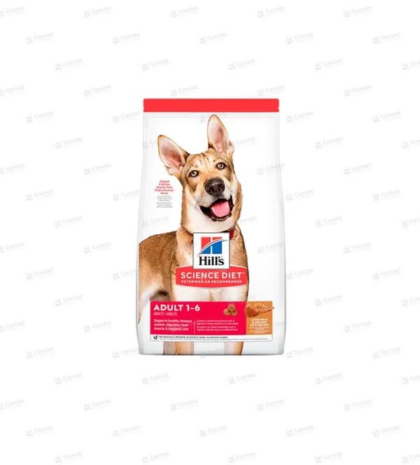 Harina de cordero, arroz integral, arroz cervecero, sorgo integral, trigo integral, harina de gluten de maíz, grasa de pollo, cebada perlada quebrada, sabor a hígado de pollo, pulpa de remolacha deshidratada, aceite de soja, linaza, ácido láctico, sabor a hígado de cerdo, cloruro de potasio, sal yodada, L-lisina, cloruro de colina, vitaminas (suplemento de vitamina E, L-ascorbil-2-polifosfato (fuente de vitamina C), suplemento de niacina, mononitrato de tiamina, suplemento de vitamina A, pantotenato de calcio, suplemento de riboflavina, biotina, suplemento de vitamina B12, clorhidrato de piridoxina, ácido fólico, suplemento de vitamina D3), carbonato de calcio, taurina, minerales (sulfato ferroso, óxido de zinc, sulfato de cobre, óxido manganoso, yodato de calcio, selenito de sodio), tocoferoles mixtos para frescura, natural Sabores, Betacaroteno.