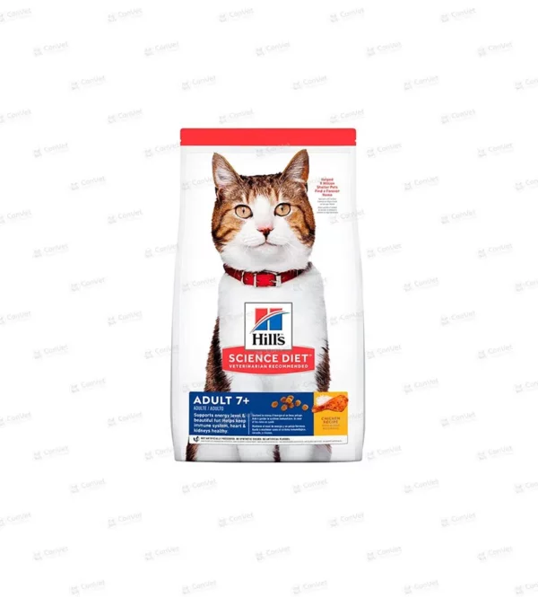 Se recomienda para:Gatos Adultos de 7+ añosNo se recomienda para:Gatitos y gatas gestantes o lactantes. Durante la gestación o lactancia, las gatas deben cambiar al alimento seco para gatos Hill’s® Science Diet® Kitten o Hills® Science Diet® Kitten Indoor.