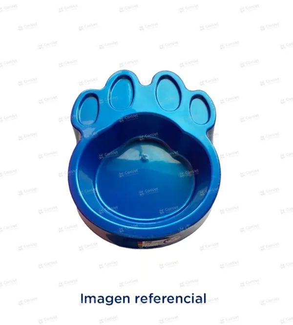 Recipiente de comida para mascotas con diseño de carita con patas. Material fácil de limpiar.